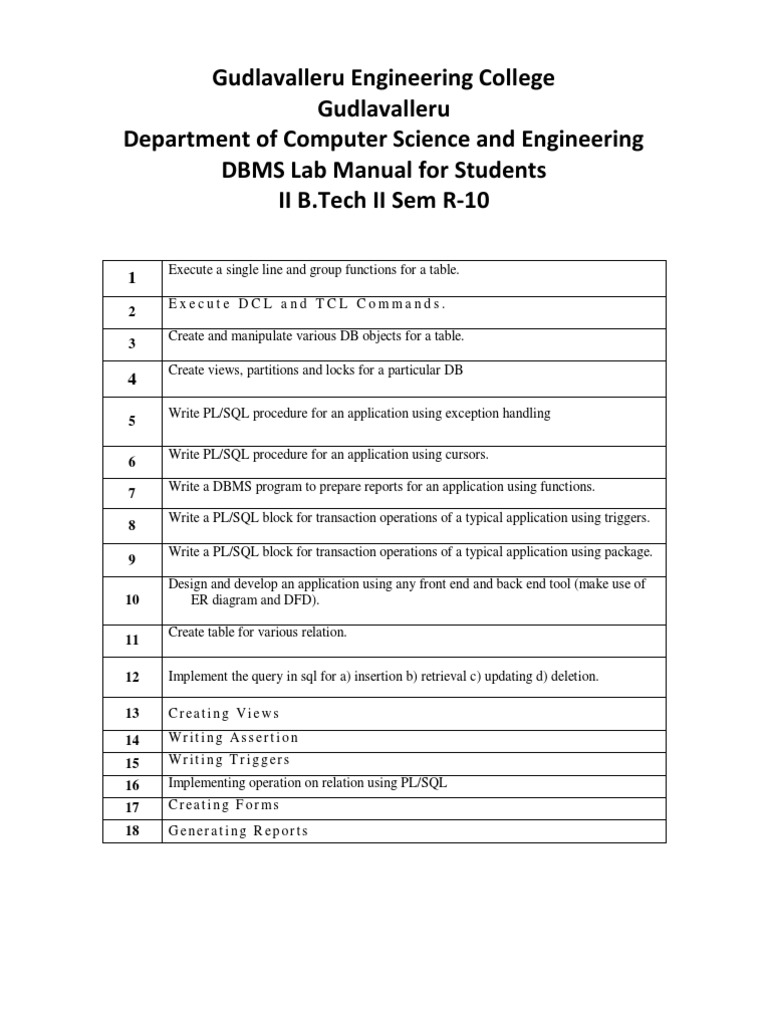 DBMS Lab Manual for B.Tech Students