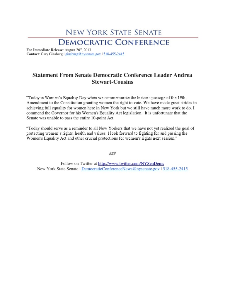 Statement From Senate Democratic Conference Leader AndreaStewart-Cousins