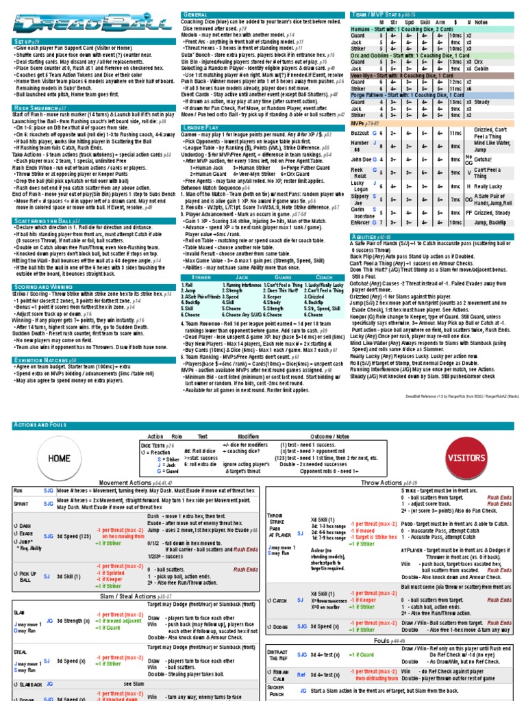 DreadBall Reference v1.5 by RangerRob (from BGG) / RangerRobAZ (Mantic)