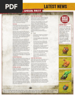 ABILITIES p62-65 A Safe Pair of Hands (S/J) +1 to Catch inaccurate pass (scattering ball or 0 success Throw) Back Flip (Any) Auto pass Stand Up action as if Doubled. Cant Feel a Thing (Any) +1 success on Armour Checks. Does This Hurt? (J/G) Treat Stomp as a Slam for move/adjacent bonus. Still a Foul. STRIKER JACK GUARD COACH [Link] [Link] Interference [Link] Feel a Thing [Link]/Really Lucky Gotcha! (Any) Causes -2 Threat instead of -1. Failed Evades away from player dont move. [Link] [Link] [Link] This Hurt? [Link] Feel a Thing 3.A Safe Pair of Hands [Link] [Link] [Link] Grizzled (Any) -1 for Slams against this player. [Link] [Link] [Link] [Link] Jump (S/J) 2 hex move part of run/sprint (counts as 2 movement and no [Link] [Link] [Link] [Link]., Speed, Skill Evade Check), 1st hex must have player. See Actions. [Link] [Link] Any S/J/G [Link] [Link] Keeper (G) Role change to Keeper, type of Guard. Still Guard, unless specifically says otherwise. 3+ Armour. May Pick up Ball or Catch at -1. 4. Team Revenue - Roll 1d per league point earned + 1d per 10 team Punt action - place ball anywhere on field, ball scatters twice, Rush Ends. rankings lower than opponent before game. Add sum to cash. p59 Dead Player - lose unspent & game XP. buy (base $+1d mc) or sell (5mc) Lucky (Any) Once per rush, player may re-roll one dice. Mind Like Water (Any) Always responds to Slams with Slamback (using Buy New Players - Max 14 players, Each role max # = 2x starting #. Speed) and rolls same # dice as Slammer. Buy Cards (10mc) & Dice (6mc) - Max 1 each / game. Max 7 each p61 Really Lucky (Any) Replaces Lucky. Lucky per action now. 5. Team Ranking - MVPs/Free Agents dont count. p61 Players(base $ +5mc / rank) + Cards(10mc) + Dice(6mc) + unspent cash Roll (S/J) If target of Stomp, treat normal Dodge as Double. Running Interference (J/G) May use once per match, see Actions. MVPs - auction available MVPs after next round games assigned. p60 Steady (J/G) Not knocked down by Slam. Still pushed/armor check Minimum Bid - cost listed (minimum) or cost last round. Start bidding w/ last owner or random. If no bids, cost -2mc next round. Available for all games in next round. Roster limit applies.