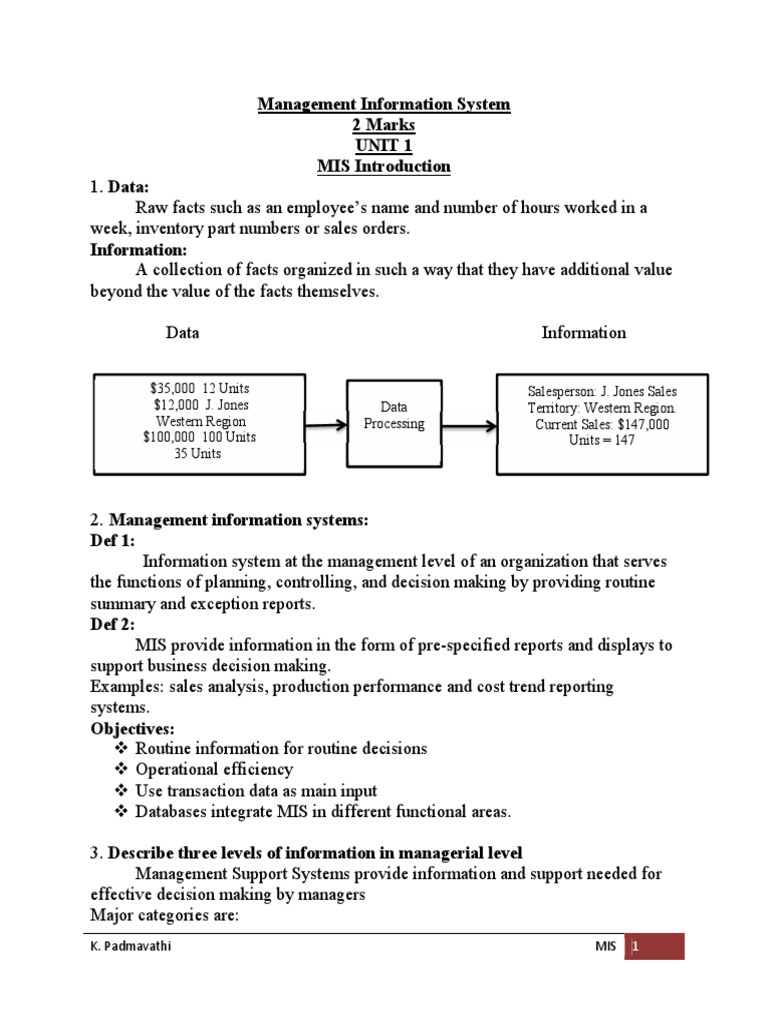 Management Information System 2 Marks UNIT 1 MIS Introduction 1.