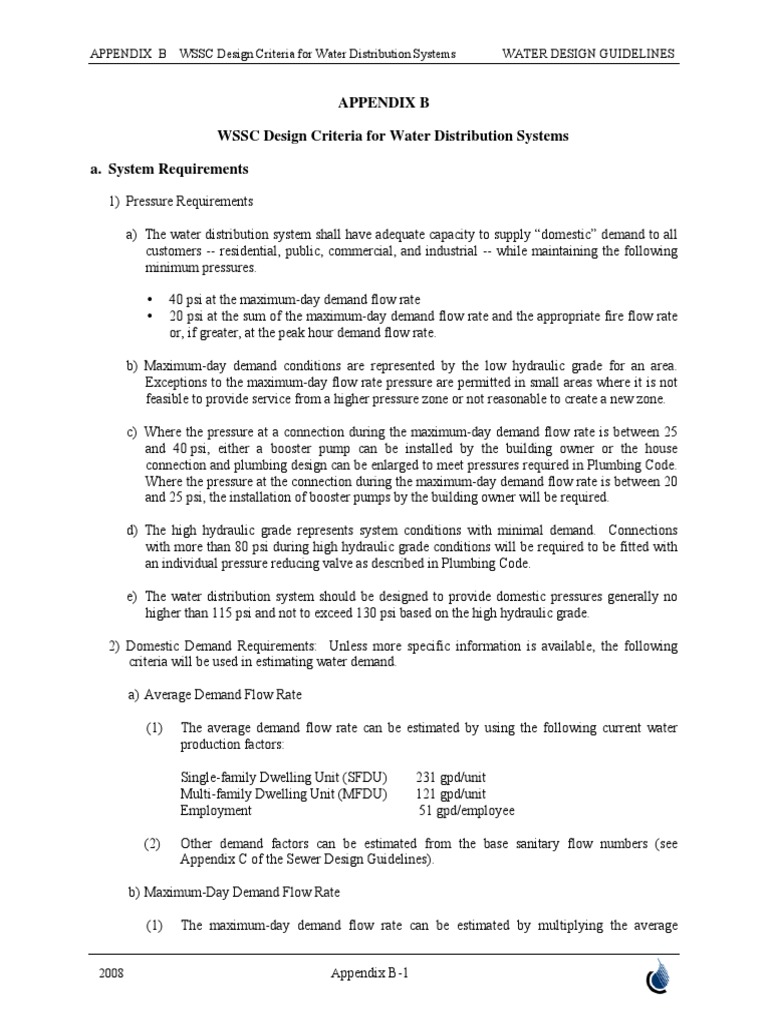 APPENDIX B WSSC Design Criteria for Water Distribution Systems a. System Requirements