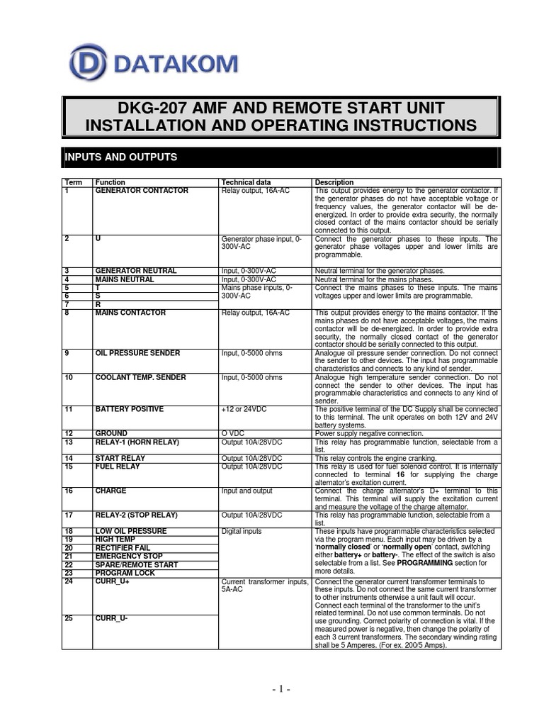 DKG-207 AMF AND REMOTE START UNIT INSTALLATION AND OPERATING INSTRUCTIONS