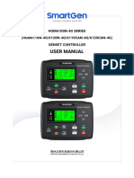 To enter the program mode, press the MENU button for 5 seconds. The program mode is only allowed if the PROGRAM LOCK input (terminal_23) is left open. If this input is tied to GROUND, the program value modification will be disabled to prevent unauthorized intervention. It is advised to keep the PROGRAM LOCK input tied to GROUND. The program mode will not affect the operation of the unit. Thus programs may be modified anytime, even while the genset is running. In program mode, when the MENU key is pressed the display will show the program parameter number, when the MENU key is released the display will show the program parameter value. The first program number is 000. Each depression of the MENU key will cause the display to switch to the next program parameter. If the MENU key is hold pressed the program numbers will increase by steps of 10. After the last parameter, the display switches back to the first parameter. The displayed parameter value may be increased or decreased using and keys. If these keys are hold pressed, the program value will be increased/decreased by steps of 10. Program parameters are kept in a non-volatile memory and are not affected from power failures. To exit the program mode press one of the mode selection keys. If no button is pressed during 1 minute the program mode will be cancelled automatically. The parameters P_051 / P_052 define the functions of relay outputs. The unit has 6 relay outputs and 2 of them have Pgm Definition Unit Std programmable functions. The fixed function relays are Fuel, 0 Current Transformer Primary A 500 Start, Mains Contactor and Generator Contactor. Relays with Current Transformer Decimal 1 0 programmable functions are RELAY-1 and RELAY-2. Point The function of a programmable relay output may be selected 2 Overcurrent Limit A 500 from the below list. 3 Excess Power Limit KW 350 4 5 6 7 8 9 10 11 12 13 14 15 16 17 18 19 20 21 22 23 24 25 26 27 28 29 30 31 32 33 34 35 36 37 38 39 40 41 42 43 44 45 46 47 48 49 50 Mains Voltage Low Limit Mains Voltage High Limit Gen. Voltage Low Limit Gen. Voltage High Limit Low Freq. Alarm Low Freq. Warning High Freq. Warning High Freq. Alarm Low Battery Voltage Warning High Battery Voltage Warning High Battery Voltage Alarm Low Oil Pressure Warning Low Oil Pressure Alarm High Temperature Warning High Temperature Alarm Oil pressure sender type Temperature sender type Hysteresis Voltage Engine Heating Temperature Holdoff timer Overcurrent / Excess Power Timer Wait before Fuel Preheat timer Start Timer Wait between Starts Engine Heating Timer Mains Waiting Timer Cooling Timer Generator Contactor Timer Mains Contactor Timer Stop Timer Start Attempts Horn Timer Engine Heating Type Charge input alarm Not used Not used Emergency Backup Operation Remote Start Operation Modem Connection Maintenance Period (Engine Hours) Maintenance Period (Months) Not used Max Engine Run Period Not used Not used Not used V V V V Hz Hz Hz Hz V V V Bar Bar C C V C sec sec 170 270 180 270 30 40 54 57 9.0 31.0 33.0 1.5 1.0 90 98 1 1 8 50 8 3 0 1 6 10 3 0.5 1.0 1 1 10 3 10 0 0 0 0 0 0 0 200 6 0 0 Pgm 51 52 00 01 02 03 04 05 06 07 08 09 10 11 12 13 14 15 16 17 18 19 20 21 22 23 24 25 26 27 28 29 30 31 32 33 34 35 36 37 38 39 40 41 42 43 44 45 46 47 Definition RELAY-1 function RELAY-2 function Fuel Horn Start Stop Gen. Contactor mains Contactor Choke Preheat Alarm Warning Alarm+Warning Automatic ready Oil switch alarm Temp switch alarm Rectifier alarm Emerg.Stop alarm Spare Alarm Oil sender alarm Temp sender alarm Speed alarm Start fail alarm Charge alarm Overload alarm Voltage alarm Battery High alarm Oil switch warning Temp switch warn. Level switch warn. Rectifier warning Emerg Stop warn. Spare warning Oil sender warning Temp sender warn. Speed warning Charge warning Battery low warning Battery high warn. Std 01 03