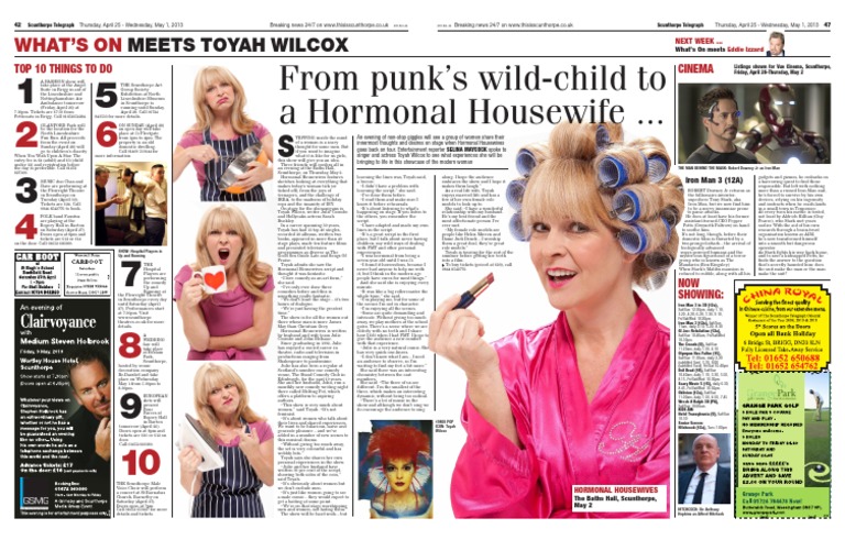 TEPPING inside the mind of a woman is a scary thought for some men. But if you want to imagine what it is like for us girls, this show will give you an idea. Three friends will confess all in an evening at the Baths Hall, Scunthorpe, on Thursday, May 2. Hormonal Housewives features sketches looking at everything that makes todays woman tick (or ticked off), from the joys of teenagers, and the challenge of IKEA, to the madness of holiday reps and the insanity of DIY. On stage for the shenanigans is Toyah Wilcox, writer Julie Coombe and Hollyoaks actress Sarah Buckley. In a career spanning 30 years, Toyah has had 13 top 40 singles, recorded 20 albums, written two books, appeared in more than 40 stage plays, made ten feature films and presented television programmes as diverse as The Good Sex Guide Late and Songs Of Praise. Toyah admits she saw the Hormonal Housewives script and thought it was fantastic. I love comedy as an art form, she said. Ive only ever done three comedies before and this is something really fantastic. We dont leave the stage its two hours of dialogue. Were just having the greatest time. The show is for all the women out there whose man is more James May than Christian Grey. Hormonal Housewives is written by husband and wife team Julie Coombe and John McIsaac. Since graduating in 1992, Julie has enjoyed a varied career in theatre, radio and television in productions ranging from Shakespeare to pantomime. Julie has also been a regular at Scotlands number one comedy venue, The Stand Comedy Club in Edinburgh, for the past 10 years. She and her husband, John, run a monthly new comedy writing night there called Melting Pot, which offers a platform to aspiring authors. This show is very much about women, said Toyah. Its not feminist. Its about women who talk about their lives and shared experiences. We want to be hilarious, naive and generate pleasure and weve added in a number of new scenes to this musical drama. Without giving too much away, the set is very colourful and has wobbly bits. Toyah says she shares her own personal experiences in the show. Julie and her husband have written 99 per cent of the script, showing both sides of the coin, said Toyah. Its obviously about women but we dont exclude men. Its just like women going to see a male comic they would expect to get a baiting at some point. Were on that stage worshipping men and women, not hating them. The show will be hard work but