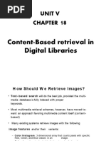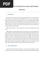 area; this percentage is also user-dened. Each region in the image is represented using a bounding box. The information stored for each region includes the color set, the image identier, the region location and the size. The image is therefore queried, based not only on the color, but also on the spatial relationship and composition of the color region. In [SNF00] the authors attempt to capture the spatial arrangement of different colors in the image, based on using a grid of cells over the image and a variable number of histograms, depending on the number of distinct colors present. The paper argues that on an average, an image can be represented by a relatively low number of colors, and therefore some space can be saved when storing the histograms. The similarity function used for retrieval is based on a weighted sum of the distance between the obtained histograms. The experimental results have shown that such a technique yields 55% less space overhead than conventional partition-based approaches, while still being up to 38% more efcient in terms of image retrieval. Pass et al [PZM96] describe a technique based on incorporating spatial information with the color histogram using coherence vectors (CCV). The technique classies each pixel in a color bucket as either coherent or incoherent, depending upon whether the pixel is a constituent of a large similarly-colored region. The authors argue that the comparison of coherent and incoherent feature vectors between two images allows for a much ner distinction of similarity than using color histograms. The authors compare their experimental results with various other techniques and show their technique to yield a signicant improvement in retrieval. It is important to note that CCVs yield two actual color histograms since each color will have a number of coherent and a number of incoherent pixels, therefore CCVs require twice as much space than traditional GCHs, which is a drawback of the approach.