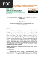 The enormous growth of image archives has signicantly increased the demand for research efforts aimed at efciently nding similar images within a large image database. One popular strategy of searching for images within an image database is called Query By Example (QBE) [dB99], in which the query is expressed as an image template or a sketch thereof, and is commonly used to pose queries in most Content-Based Image Retrieval (CBIR) systems such as IBMs QBIC1 , Virages VIR Image Engine retrieval system2 , and IBM/NASAs Satellite Image Retrieval system3 . Typically, the CBIR system extracts visual features from a given query image, which are then used for comparison with the features of other images stored in the database. The similarity function is thus based on the abstracted image content rather than the image itself. One should note that given the ever-increasing volume of image data that is available, the approach of relying on human-assisted annotations as a means of image abstraction is not feasible. The color distribution of an image is one such feature that is extensively utilized to compute the abstracted image content. It exhibits desired features such as low complexity for extraction, invariance to scaling and rotation, and partial occlusion [SB91]. In fact, it is common to use a Global Color