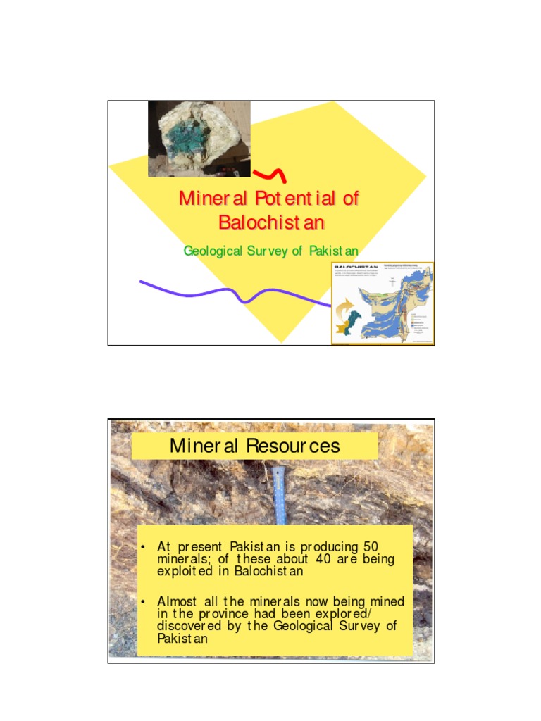 Kohistan Magmatic ArcKarakoram BlockChaman- Ornach-Nal Transform Fault zoneLasbela- Khuzdar, Muslim Bagh, Zhob-WaziristanOphiolites & Melange zoneSediment hosted Lead-Zinc- Barite- Flourite deposits.Kirthar Thrust & Fold Belt.Sulaiman Thrust & Fold Belt.