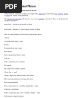 HINTS ON GRAMMAR: If you FIRST identify and mark all the prepositional phrases in a sentence, the entire sentence structure becomes much easier to see and understand. It is much easier to then identify the subject, verb, objects, and compliments in clauses. The object of a preposition can NEVER be the subject of a clause or sentence. example: The group of girls was shocked. The object of the preposition of is girls. Therefore the subject mus be group. And so, the correct verb is was and not were The group [...] was shocked. However, the object of the preposition sometimes helps determine the verb form in subject-verb agreement (such as words of portion like all, most, some, half etc..), but the object of the preposition is still NOT the actual subject. e.g. Most (of the chickens) are sick. Most (of the chicken) is gone. (i.e. has been eaten) All (of the chickens) are sick. All (of the chicken) is gone. Prepositional Phrases most often act as adjectival or adverbial phrases. I can't reach that big red book on the top shelf. Which big red book? The one on the top shelf (adjectival phrase) The big red book sat on the top shelf for weeks. The big red book sat where? On the top shelf (adverbial phrase)