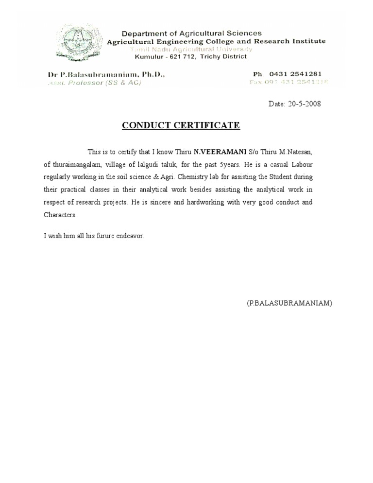 respect of research projects. He is sincere and hardworking with very good conduct and