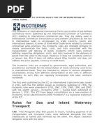 The Incoterms rules or International Commercial terms are a series of pre-defined commercial terms widely used in international commercial transactions. The Incoterms rules are intended primarily to clearly communicate the tasks, costs and risks associated with the transportation and delivery of goods. They are intended to reduce or remove altogether uncertainties arising from different interpretation of the rules in different countries. First published in 1936, the Incoterms rules have been periodically updated in 1953, 1967, 1976, 1980, 1990 and 2000, with the eighth versionIncoterms 2010having been published on January 1, 2011.