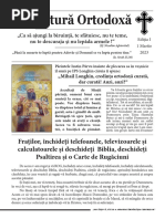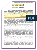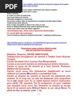 scpa de dureri, vor fi primii care se vor distruge. Iar ei vor ti totul despre om, i vor cunoate gndurile, sentimentele i vor putea interveni n viaa lui. Dar nu vor avea nicio putere asupra omului care va nelege i se va mprti. Sfnta mprtanie va rspndi n jurul acelui om o asemenea putere, va fi aprat de ngeri att de tare, nct Lucifer i slujitorii si nu vor putea vtma cu nimic acel suflet. i va tri acel om cu puin hran i va supravieui, iar cei ce vor avea de toate vor muri. Ce vrea Dumnezeu de la noi? S avem credin n El. Nu doar credin, ci ncredere desvrit. S ne schimbm viaa ncepnd de astzi, s-L iubim pe Dumnezeu i s alergm n braele Lui ca un copil n braele mamei sale. i chiar de va avea vreo suprare, nu va alerga n braele altei mame. Ce nseamn asta? C dei Dumnezeu ne mai ceart, pentru a ne ajuta s ne schimbm viaa, noi nu trebuie s ne ndeprtm, ci iari s revenim n braele Sale. Omilia din 27.03.2013 Vreau sa stiti ceva: traim vremuri apocaliptice. Cine nu a inteles acest lucru, doarme un somn adanc. Cine nu vede ceea ce se intampla azi ca facand parte din timpul Apocalipsei nu a inteles nici ce este Apocalipsa, nici ce inseamna Antihrist.