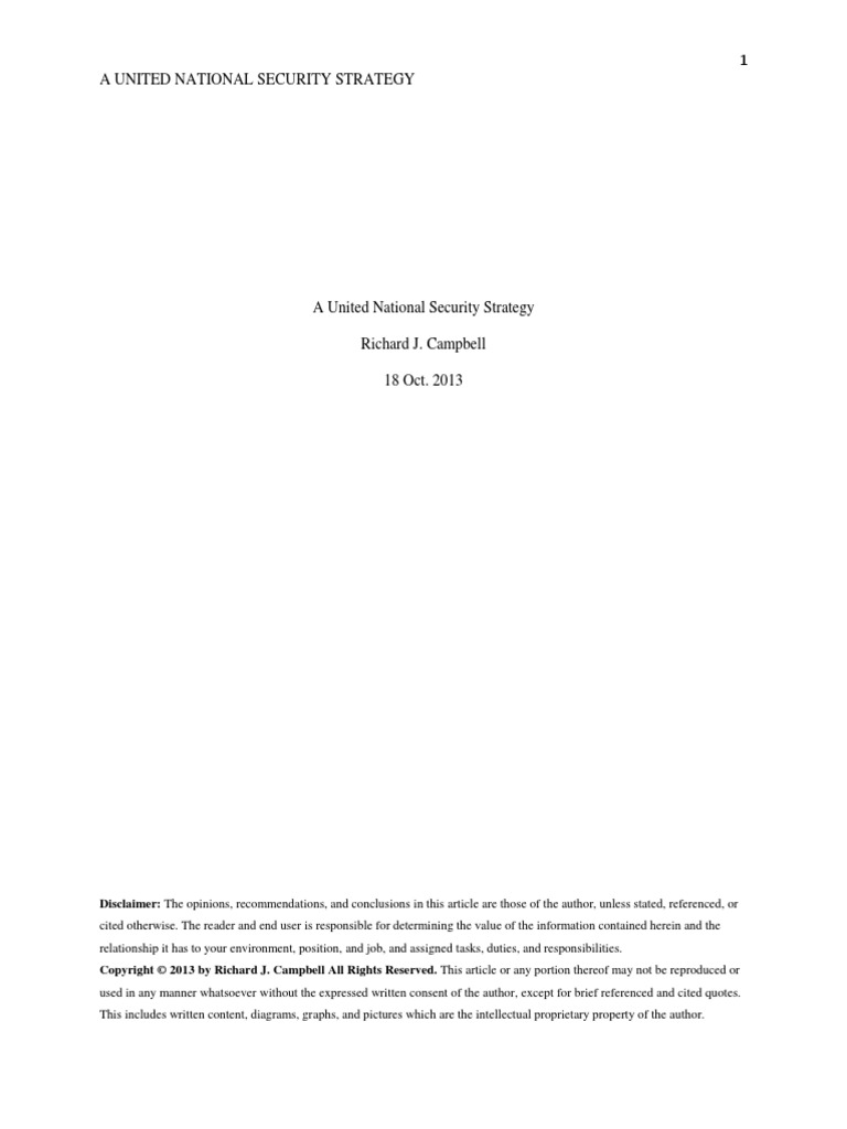 A UNITED NATIONAL SECURITY STRATEGY A United National Security Strategy The United States