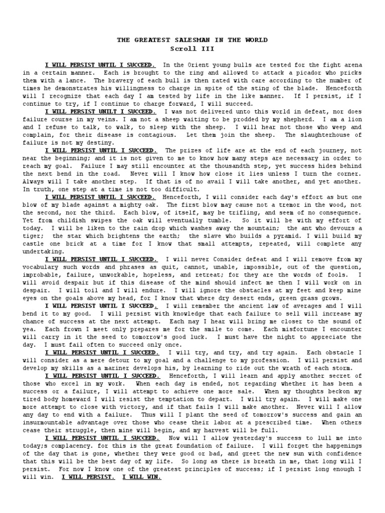 THE GREATEST SALESMAN IN THE WORLD Scroll III