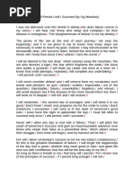 I WILL PERSIST UNTIL I SUCCEED. In the Orient young bulls are tested for the fight arena in a certain manner. Each is brought to the ring and allowed to attack a picador who pricks them with a lance. The bravery of each bull is then rated with care according to the number of times he demonstrates his willingness to charge in spite of the sting of the blade. Henceforth will I recognize that each day I am tested by life in the like manner. If I persist, if I continue to try, if I continue to charge forward, I will succeed. I WILL PERSIST UNILT I SUCCEED. I was not delivered unto this world in defeat, nor does failure course in my veins. I am not a sheep waiting to be prodded by my shepherd. I am a lion and I refuse to talk, to walk, to sleep with the sheep. I will hear not those who weep and complain, for their disease is contagious. Let them join the sheep. The slaughterhouse of failure is not my destiny. I WILL PERSIST UNTIL I SUCCEED. The prizes of life are at the end of each journey, not near the beginning; and it is not given to me to know how many steps are necessary in order to reach my goal. Failure I may still encounter at the thousandth step, yet success hides behind the next bend in the road. Never will I know how close it lies unless I turn the corner. Always will I take another step. If that is of no avail I will take another, and yet another. In truth, one step at a time is not too difficult. I WILL PERSIST UNTIL I SUCCEED. Henceforth, I will consider each day's effort as but one blow of my blade against a mighty oak. The first blow may cause not a tremor in the wood, not the second, nor the third. Each blow, of itself, may be trifling, and seem of no consequence. Yet from childish swipes the oak will eventually tumble. So it will be with my effort of today. I will be liken to the rain drop which washes away the mountain; the ant who devours a tiger; the star which brightens the earth; the slave who builds a pyramid. I will build my castle one brick at a time for I know that small attempts, repeated, will complete any undertaking. I WILL PERSIST UNTIL I SUCCEED. I will never Consider defeat and I will remove from my vocabulary such words and phrases as quit, cannot, unable, impossible, out of the question, improbable, failure, unworkable, hopeless, and retreat; for they are the words of fools. I will avoid despair but if this disease of the mind should infect me then I will work on in despair. I will toil and I will endure. I will ignore the obstacles at my feet and keep mine eyes on the goals above my head, for I know that where dry desert ends, green grass grows. I WILL PERSIST UNTIL I SUCCEED. I will remember the ancient law of averages and I will bend it to my good. I will persist with knowledge that each failure to sell will increase my chance of success at the next attempt. Each nay I hear will bring me closer to the sound of yea. Each frown I meet only prepares me for the smile to come. Each misfortune I encounter will carry in it the seed to tomorrow's good luck. I must have the night to appreciate the day. I must fail often to succeed only once. I WILL PERSIST UNTIL I SUCCEED. I will try, and try, and try again. Each obstacle I will consider as a mere detour to my goal and a challenge to my profession. I will persist and develop my skills as a mariner develops his, by learning to ride out the wrath of each storm. I WILL PERSIST UNTIL I SUCCEED. Henceforth, I will learn and apply another secret of those who excel in my work. When each day is ended, not regarding whether it has been a success or a failure, I will attempt to achieve one more sale. When my thoughts beckon my tired body homeward I will resist the temptation to depart. I will try again. I will make one more attempt to close with victory, and if that fails I will make another. Never will I allow any day to end with a failure. Thus will I plant the seed of tomorrow's success and gain an insurmountable advantage over those who cease their labor at a prescribed time. When others cease their struggle, then mine will begin, and my harvest will be full. I WILL PERSIST UNTIL I SUCCEED. Now will I allow yesterday's success to lull me into today;s complacency. for this is the great foundation of failure. I will forget the happenings of the day that is gone, whether they were good or bad, and greet the new sun with confidence that this will be the best day of my life. So long as there is breath in me, that long will I persist. For now I know one of the greatest principles of success; if I persist long enough I will win. I WILL PERSIST. I WILL WIN.