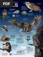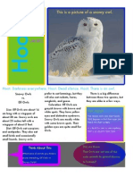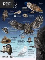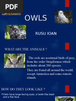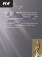 Owls are nocturnal hunting birds with eyes that face forwards. They are closely related to hawks. Owls sleep during the day and emerge at night to hunt small prey. There are about 162 different species of owls alive today, inhabiting a huge variety of ecological niches, from rainforests to tundra.