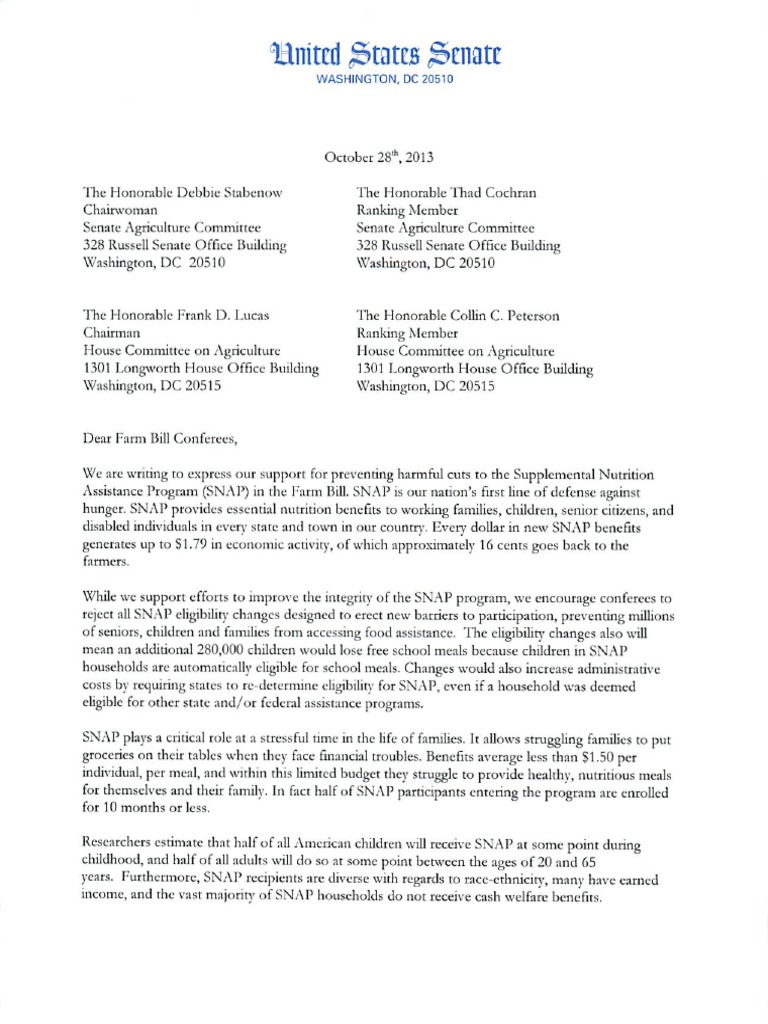 U.S. Senator Tom Udall joined a coalition of 38 of his colleagues in urging the conferees to fight against harmful cuts to the Supplemental Nutrition Assistance Program (SNAP).