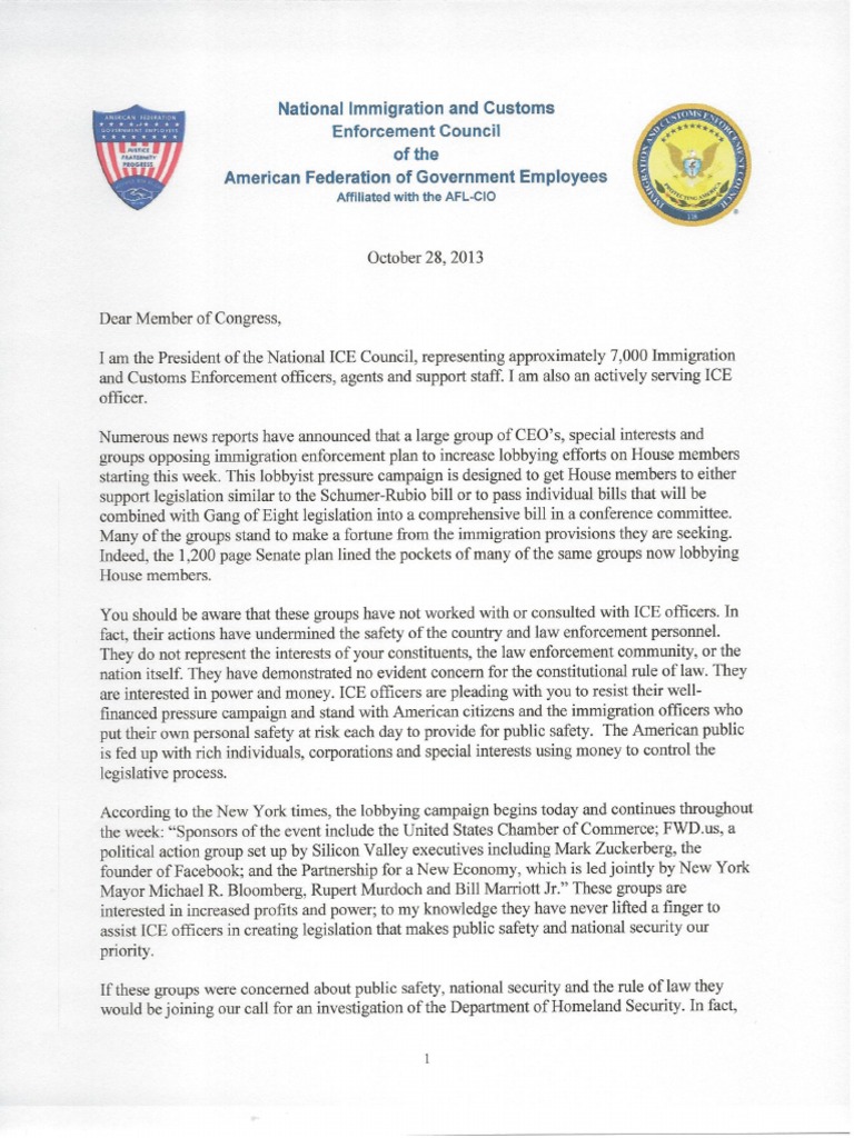 ICE Council President Chris Crane alerts Congress to the efforts underway this week from CEO’s and anti-law enforcement pressure groups who support amnesty for illegal aliens.