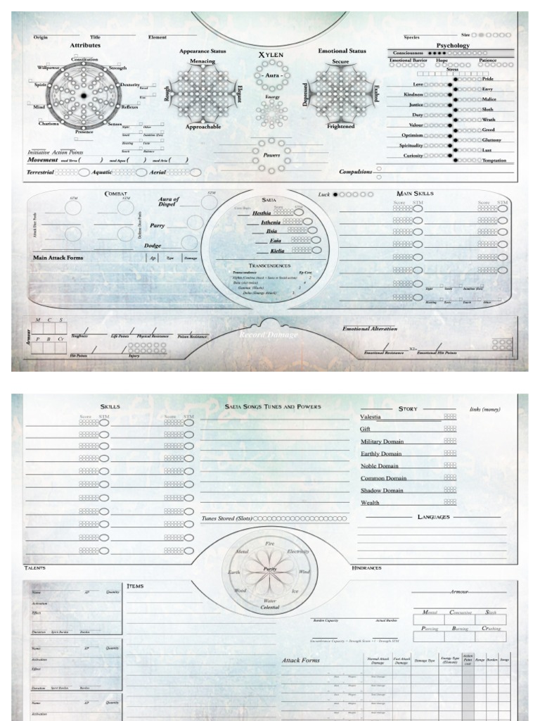 Comprehensive Character Sheet Template