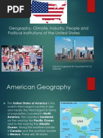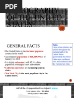 Size: 3,717,813 sq mi total 3,536,294 sq mi land 181,519 sq mi water Largest Lake: Lake Superior (31,700 sq mi) Highest Mountain: Mount McKinley (20,320 ft) Largest Desert: Great Basin Desert (190,000 sq mi)