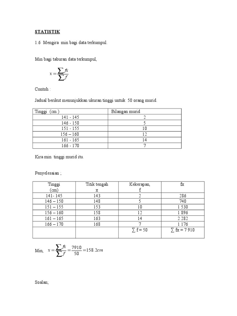 bagi 40 orang murid. Hitungkan min tinggi murid itu.