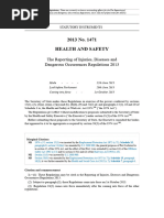 This is a free-to-download, web-friendly version of L73 (Fourth edition, published 2012). This version has been adapted for online use from HSEs current printed version. You can buy the book at [Link] and most good bookshops. ISBN 978 0 7176 6459 7 Price 17.50 This new edition includes changes to the over-three-day reporting requirement under regulation 3(2) that becomes law on 6 April 2012. It also brings the associated guidance up to date, particularly in relation to the changes in reporting arrangements and the new online service.* The introduction contains a useful list of reportable major injuries, dangerous occurrences and diseases for easy reference. * To make a report, go to [Link]/riddor. A telephone service can be used to report fatal and major injuries only. Call the Incident Contact Centre on 0845 300 9923 (opening hours Monday to Friday 8.30 am to 5 pm). See paragraphs 55-90 of the guidance.