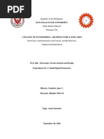 Increasing the gain of the amplifier In order to increase the gain, an engineer decided to increase value of RC to 15 k. (i) Change RC to 15 k. (ii) Measure the gain of the amplifier. Does it increase? If necessary, decrease the amplitude of the input signal. (iii) Measure the DC biasing conditions to determine the mode of operation of the BJT. It is known from theory that the gain of the CE amplifier can be increased by connecting a capacitor in parallel with RE. (i) Change RC back to 3.3 k. (ii) Connect a 100F capacitor across RE, and measure the gain. You may need to use a potential divider to reduce the Rp1 amplitude of the input signal (5mV to 10mV peak) so that 10 k output signal waveform is undistorted.