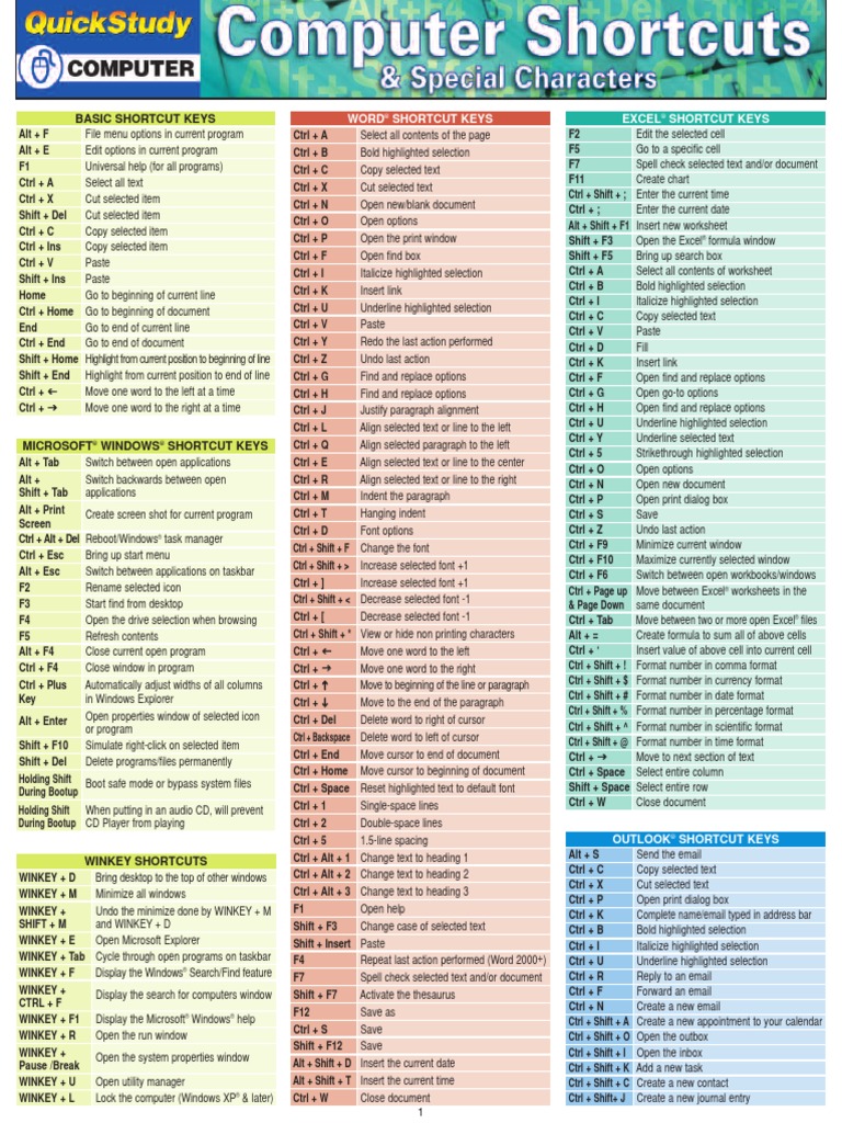 BASIC SHORTCUT KEYS Alt + F File menu options in current program Alt + E Edit options in current program F1 Universal