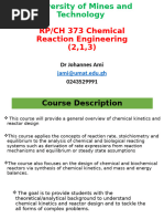 No: CL 303 (2 1 0) 6 Course structure Instructor: Dr. B P Mandal (Upto to mid sem): Classification of chemical reactions; single, multiple, elementary and nonelementary homogeneous reactions; order and molecularity; temperature dependency; constant and variable volume batch reactor; reaction rate; rate constant; collection and interpretation of kinetic data. Text book: O. Levenspiel, "Chemical Reaction Engineering", Wiley Eastern, 2nd ed., 1972. (Chapter 1 to Chapter 7).