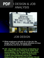 JOB DESIGN Job design is defined as the process of deciding on the content of a job in terms of its duties and responsibilities; on the methods to be used in carrying out the job, in terms of techniques, systems and procedures and on ' the relationships that should exist between the job holder and his, superiors, subordinates and colleagues."' Two important goals of job design are: To meet the organizational requirements such as higher productivity, operational efficiency, quality of product/service etc. and To satisfy the needs of the individual employees like interests, challenge, achievement) or accomplishment, etc.