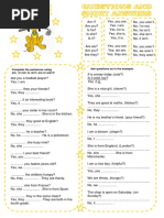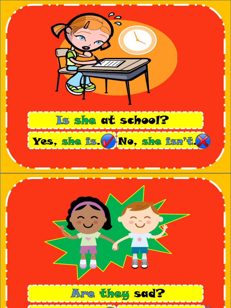 This document asks a series of yes or no questions about different locations and experiences, including whether the subject is at school, sad, happy, at home, believes in monsters, has a new computer, is a scientist, is in a bedroom, is in a park, or is at a party.