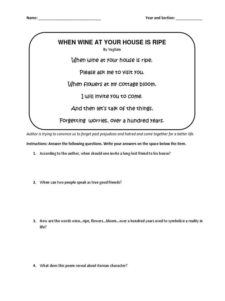 Author is trying to convince us to forget past prejudices and hatred and come together for a better life. Instructions: Answer the following questions. Write your answers on the space below the item. 1. According to the author, when should one invite a long-lost friend to his house?