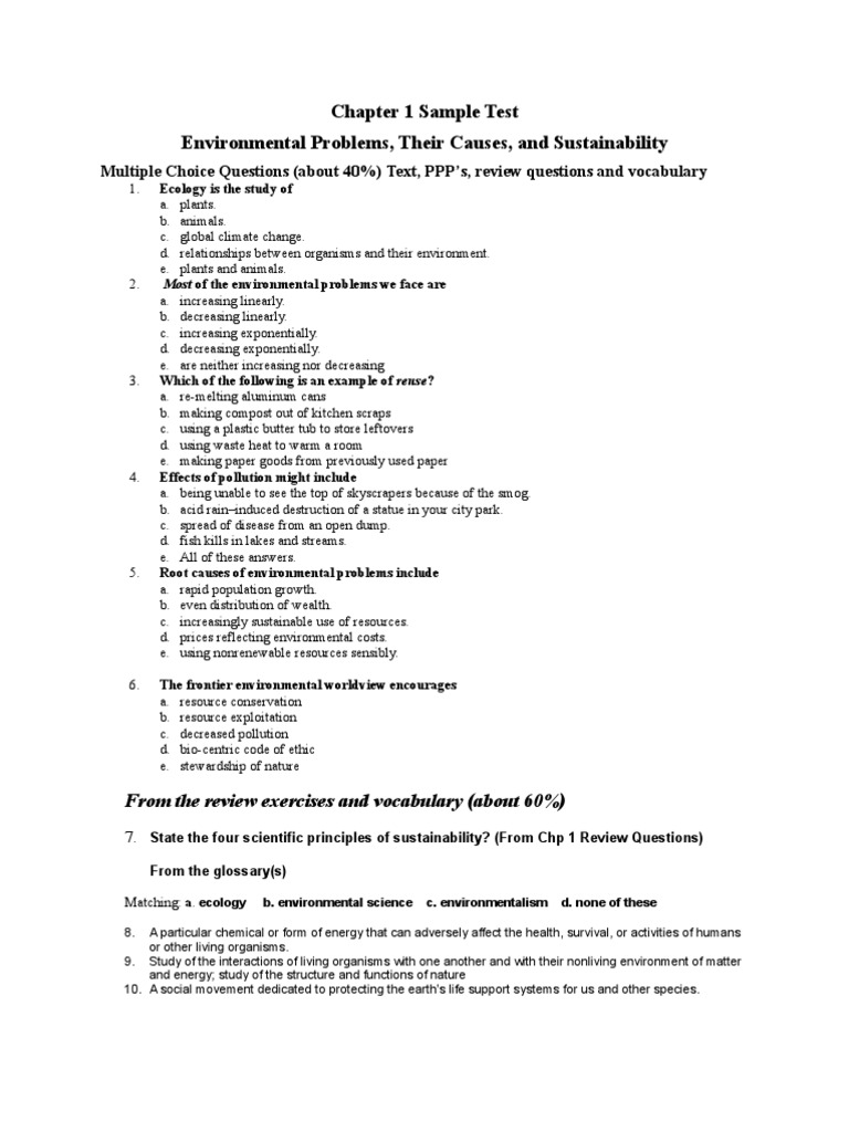 Matching: a. ecology b. environmental science c. environmentalism d. none of these