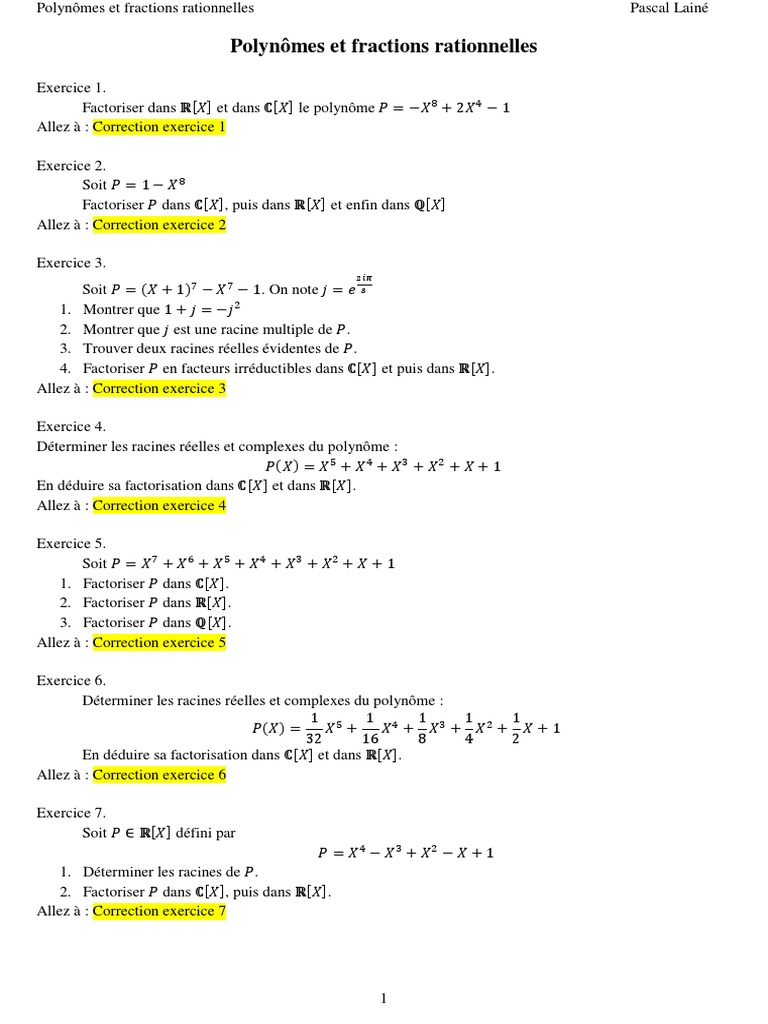 Exercices Corriges Polynomes Fractions Rationnelles