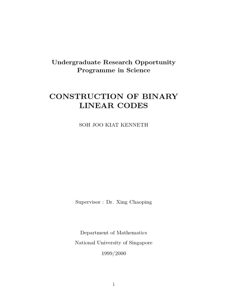 Before we construct some optimal linear codes, we will study some basic properties of binary linear codes.