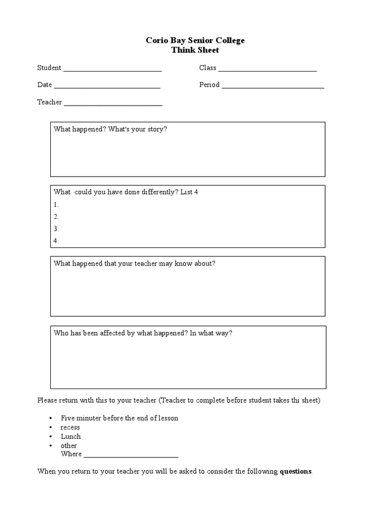 Corio Bay Senior College Think Sheet
