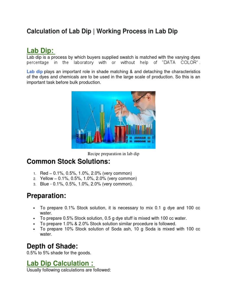 Calculation of Dyeing Recipe | Calculation for Dyeing Lab