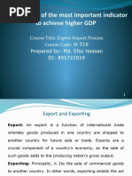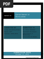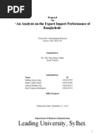 1.1 The word export is derived from the conceptual meaning as to ship the goods and services out of the port of a country. The seller of such goods and services is referred to as an exporter who is based in the country of export whereas the overseas based is referred to as an importer (foreign buyer). In international trade exports refers to selling goods and services produced in home country to other foreign markets. 1.2 Bangladesh exports about 168 different products and services to almost 186 countries. The main exportable are Readymade Garments, Knitwear, Home Textile, Frozen Food, Leather & Leather goods, Jute and goods which contribute near about 87% of our total export. On the other hand the main export destination of Bangladesh are USA, Canada, EU Countries including U.K, Germany, France, Italy, Sweeten etc contributing almost 83% of total export. The export statistics reveals that Bangladesh is proceeding with positive export growth since 1974-75 achieving the highest export growth 41.47% in the FY 2010-11. Anexxure-17 presents the export trend from the year1974-75 to 2011-12 as well as the export performance in July-June, 2012.