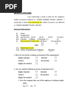 2$) 1tate t&e satis"action level "or t&e "ollo)ing "actor o" t&e .&ysical environment in t&e organisation; <41- <ig&ly satis"ied5 1- 1atis"ied5 N- Neutral5 -41- -issatis"ied5 <4-- <ig&ly dissatis"ied 0articulars a) Air condition b) %ig&tening c) Centilation and tem.erature d) >ecreation "acilities e) 1.ace <41 1 N -41 <4-