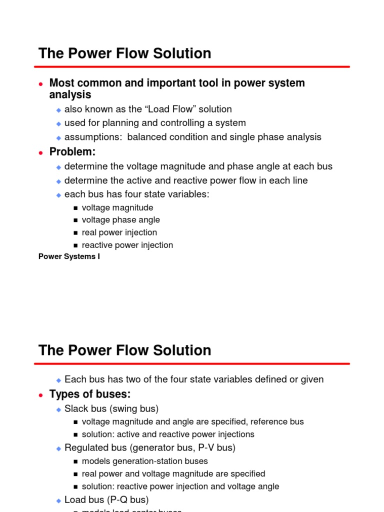 u also known as the Load Flow solution