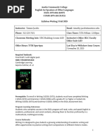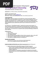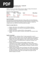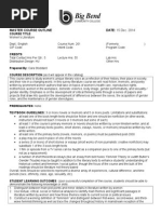being rude or belligerent to me or other students, etc. This is a discussion-based course, and I expect you to treat each other with dignity and respect. We may be discussing sensitive topics and reading each others personal writing in this course. Please be considerate of others ideas and beliefs and do not discuss the content of others papers with students outside of this class. In accordance with Big Bends Discrimination Policy, disrespect or discrimination towards students based on race, color, national origin, ethnicity, citizen status, sex, disability, sexual orientation, gender identity or chosen gender, veteran status, age, or religion will not be tolerated. If you feel your well-being is being jeopardized or you have observed someone else being treated disrespectfully, please come speak to me about it privately after class or during my office hours. Readings. In accordance with Big Bends mission statement to encourage multiculturalism, this class has been intentionally designed to include readings that represent a diverse set of cultures and peoples and express points of view on controversial contemporary social and political issues. In this class we may discuss, read, write about, or view texts that you disagree with or find offensive. Such texts are not necessarily condoned, but rather used to prompt discussion and explore ideas that may be outside of our individual preferences and comfort levels. In this college classroom you are required to engage maturely and academically with all texts, regardless of their content or rating. Please email or see me privately during office hours if you have any questions about this policy.