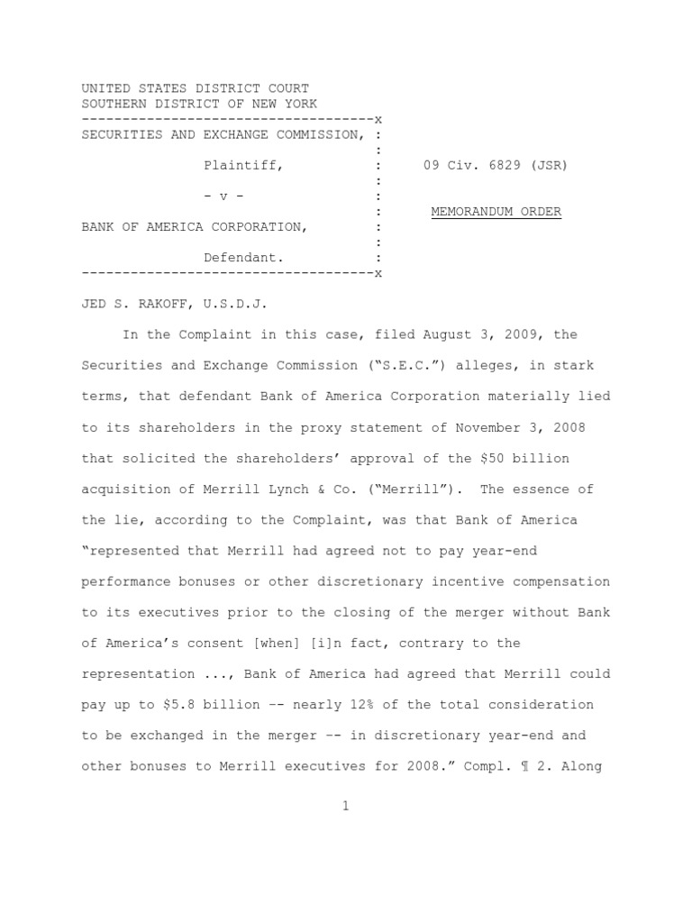 executives of Bank of America, upon learning that Merrill’s loss