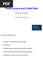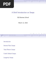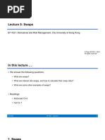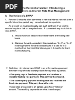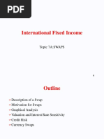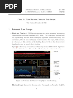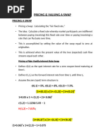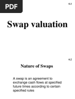 Taking the PV of these net cash flows as of time 0.5 at the current fixed rate of 4.5% (APR) yields us -$0.5M / 1.0225 + -$0.5M / (1.0225)2 + -$0.5M / (1.0225)3 = -$1.43495M Thus with this technique we get that the combined swaps have a PV of $1.43495M. Since the new swap has, by definition, an NPV of 0, this means that the value of the original swap to the firm must be -$1.43495M, exactly as with the previous method. This is the method for valuing interest rate swaps where the cash flows re all in the same currency and the firms is simply swapping fixed interest rate payment for floating rate payments (or vice verse). Now we turn to currency swaps where the flows will be in different currencies. SAIS 380.760 Class Note on Valuing Swaps p. 3