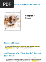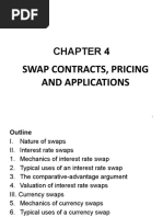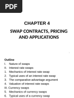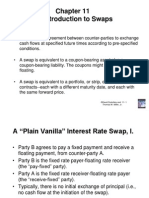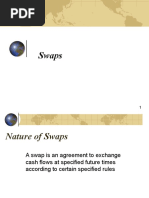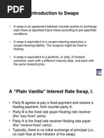 A swap is a financial instrument that exchanges one set of cash flows for another set of cash flows of equal expected value. Swaps allow parties to take speculative positions on certain financial prices or to alter the cash flows of existing assets or liabilities, most often to manage risk or to convert cash flows of one type of security into the cash flows of another type without physically have to sell the old one and buy the new one. In all cases, when a swap is initially set up, the payment structures are set so that the PV of the expected amount a party pays is equal to the expected amount that that party receives. Thus at issuance the swap is a zero NPV contract (ignoring transaction costs). This means the PV of the expected cash flows to one side of the swap equals the expected cash flows to the other side of the swap at initiation. However, if the financial prices or expected prices upon which the swap is based changes, the value of the swap will change. When the value changes, one party to the swap will experience a gain equal to the increase in the value of swap, while the other party to the swap will experience an equivalent loss (zero sum game). Below we will consider both interest rate and currency swaps and consider how to measure their change in value in response to changes in their underlying financial prices