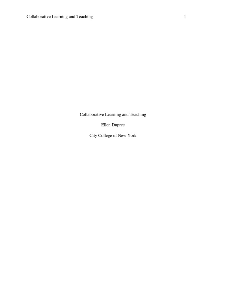 Collaborative Learning and Teaching Ellen Dupree City College of New York