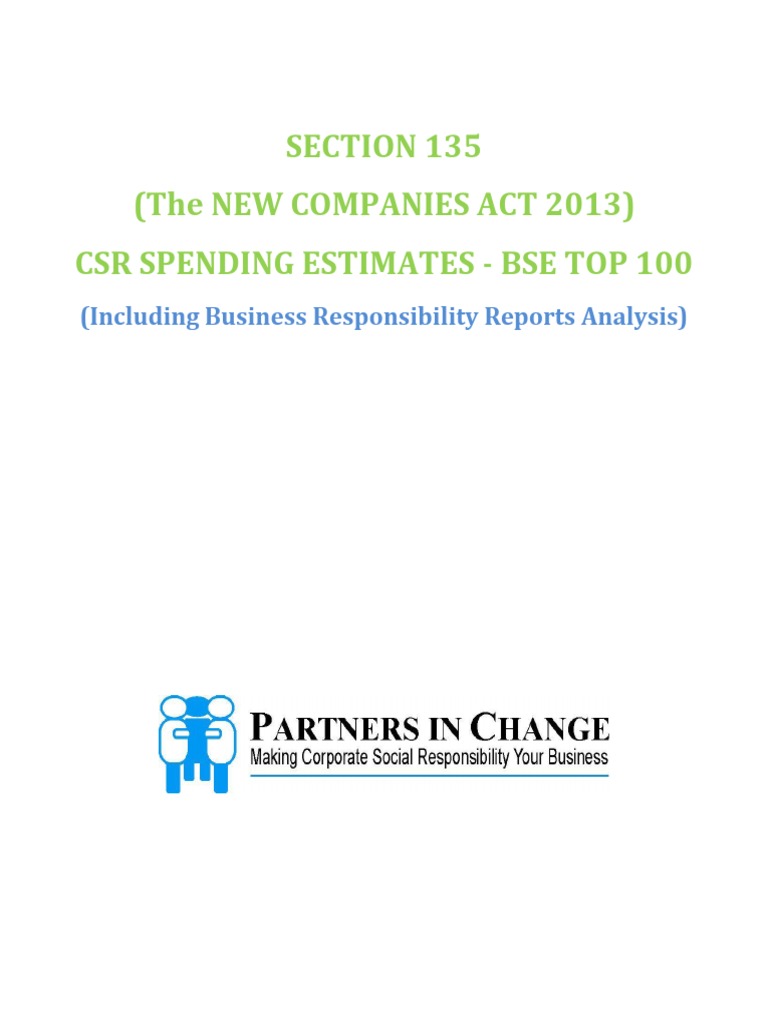 fter the Lok Sabha gave its approval in December last year, there arose some noise surrounding the New Companies Bill 2013. Media, companies, and that part of the general public that seems interested in the legislative affairs of the country dissected the Bill end to end, discussed and debated the likely impacts. A few days later, the noise ceased. Nobody seemed to know what ultimately would become of the bill. Every Parliament session post December 2012 saw increased anticipation among interested stakeholders as to when Rajya Sabha will formally take up the bill for consideration. After more than seven months, on August 8th, the bill was moved for consideration in the upper house. This is a momentous day, as this will usher in a new era for the company law," said Sachin Pilot, Minister of State for corporate affairs after the bill was passed, aptly encapsulating the end of a long and anxious wait. The President gave his approval to the bill to be enacted into a law end of August 2013. The spanking new Act is simpler, with fewer clauses and pages and looks at contemporary issues such as corporate governance, investor protection, corporate social responsibility (CSR) and measures to check frauds. Further, a third of corporate boards have to necessarily comprise independent members, some boards would have to include more women, auditors will be compulsorily changed every ten years, minority shareholders and depositors can launch action suits against managements, among other sea changes. What interests us, Partners in Change (PiC), as an organization that has been pioneering the understanding and practice of corporate responsibility issues in India, is Clause 135 that makes it mandatory for companies of a certain size and profitability to spend 2% of their average net profits of previous 3 years on CSR. The proposed draft CSR rules under Section 135 of the Act has been posted on the Ministry of Corporate Affairs (MCA) website for public comments till 7th October 2013. The proposed draft rules specify that Net Profit for the section 135.. shall mean, net profit before tax as per books of accounts..