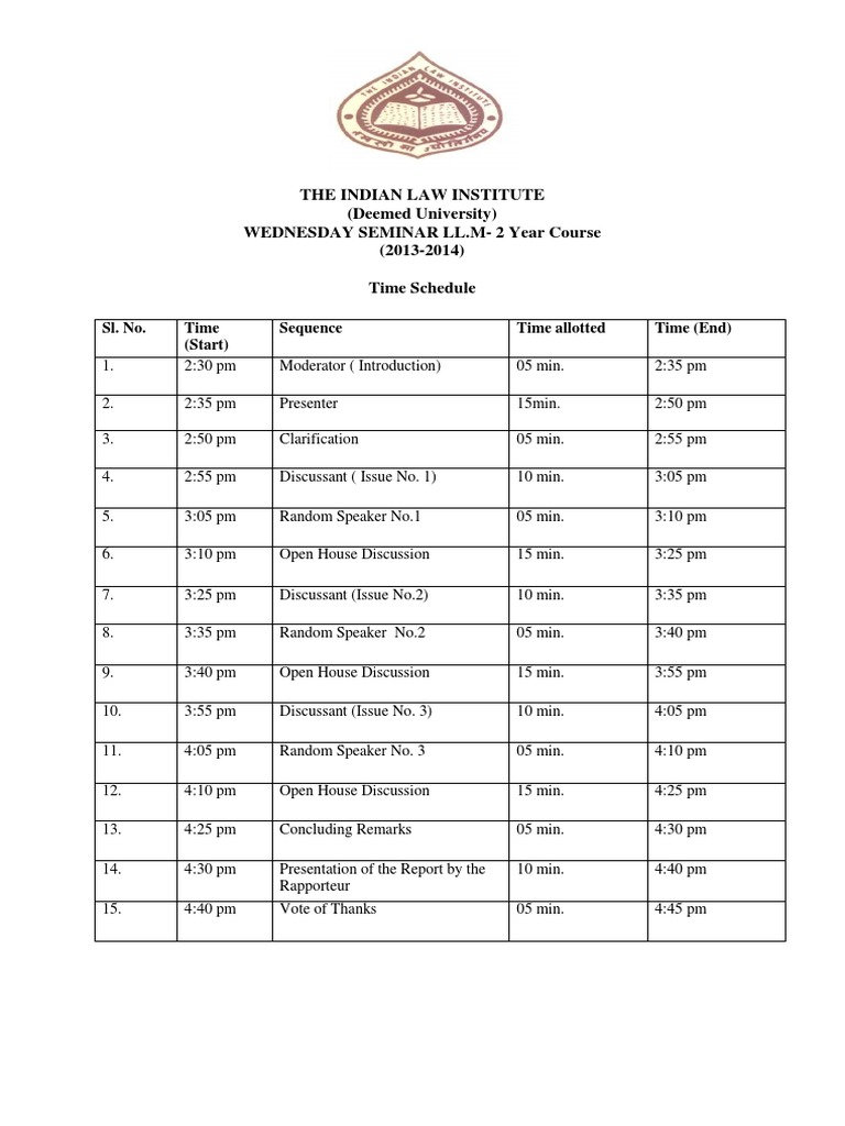 THE INDIAN LAW INSTITUTE (Deemed University) WEDNESDAY SEMINAR LL.