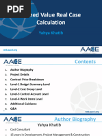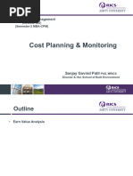This document discusses Earned Value Analysis (EVA) and project control. It defines key EVA terms like Budgeted Cost of Work Scheduled (BCWS), Actual Cost of Work Performed (ACWP), and Budgeted Cost of Work Performed (BCWP). It provides examples of how to calculate variances, indexes, and forecasts using EVA. The document also discusses integrating cost and schedule performance, updating estimates, and using performance measurement for project control through techniques like target adjustments, problem diagnosis, and risk management.