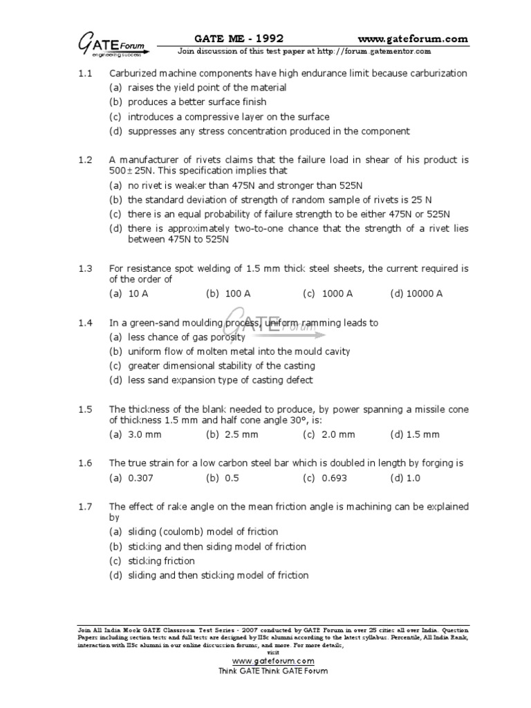 Join All India Mock GATE Classroom Test Series - 2007 conducted by GATE Forum in over 25 cities all over India. Question Papers including section tests and full tests are designed by IISc alumni according to the latest syllabus. Percentile, All India Rank, interaction with IISc alumni in our online discussion forums, and more. For more details, visit