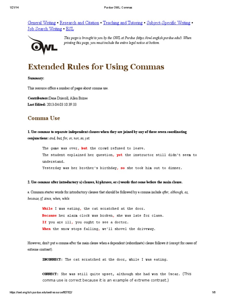 Purdue OWL: Commas